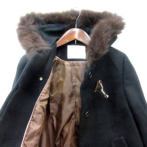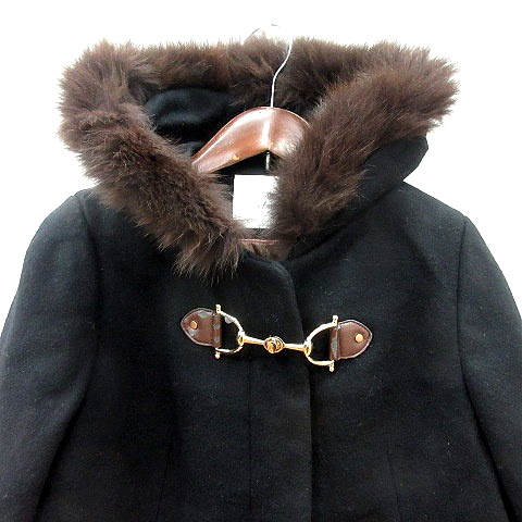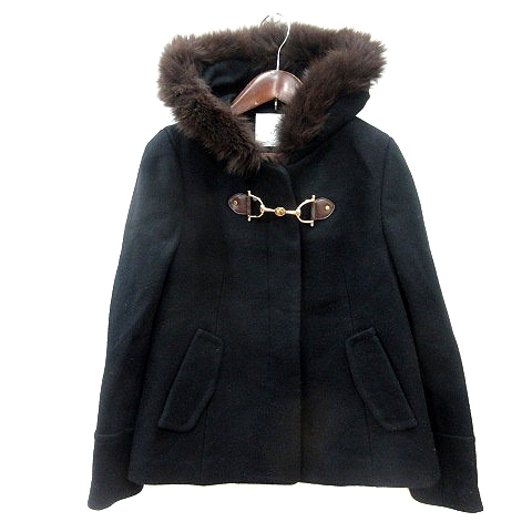 エフデ ef-de コート ショート 総裏地 ウール フォックスファー 7 S 黒 ブラック /MN レディース