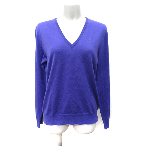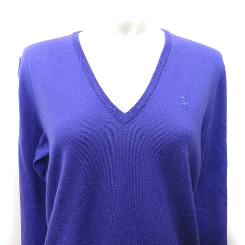 ラルフローレン RALPH LAUREN カットソー Vネック 長袖 刺繍 ウール M 紫 パープル /YI レディース