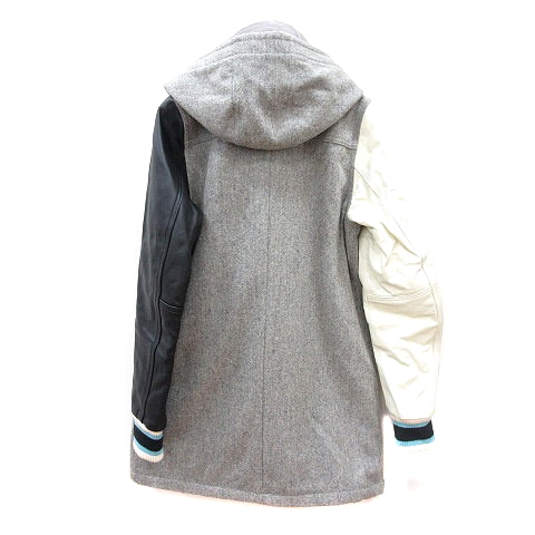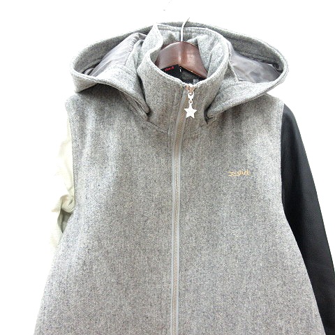 • エックスガール x-girl 中綿コート 総裏地 切替 牛革 レザー フード ウール 2 M グレー /MN レディース