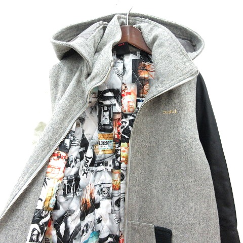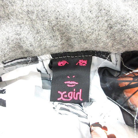 エックスガール x-girl 中綿コート 総裏地 切替 牛革 レザー フード ウール 2 M グレー /MN レディース