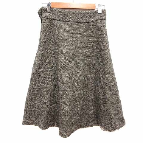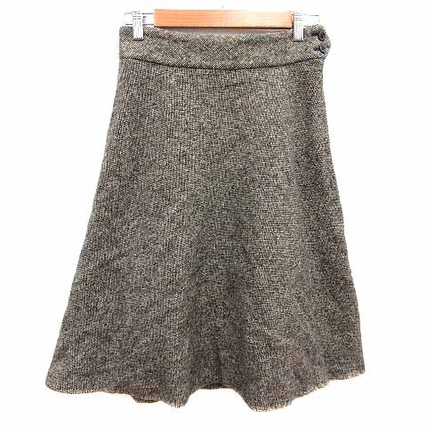 ラルフローレン RALPH LAUREN フレアスカート ミモレ ロング ウール 7 S ベージュ 黒 ブラック /YK レディース