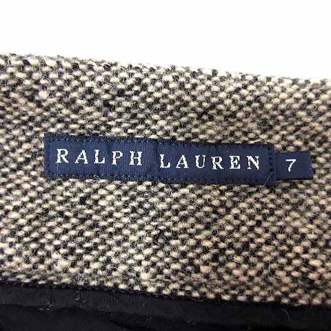 • ラルフローレン RALPH LAUREN フレアスカート ミモレ ロング ウール 7 S ベージュ 黒 ブラック /YK レディース