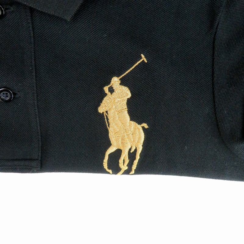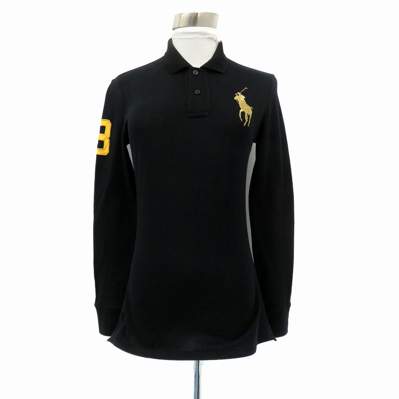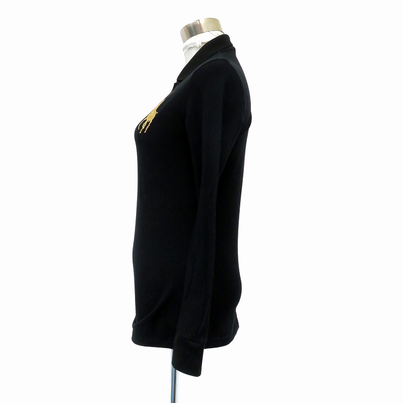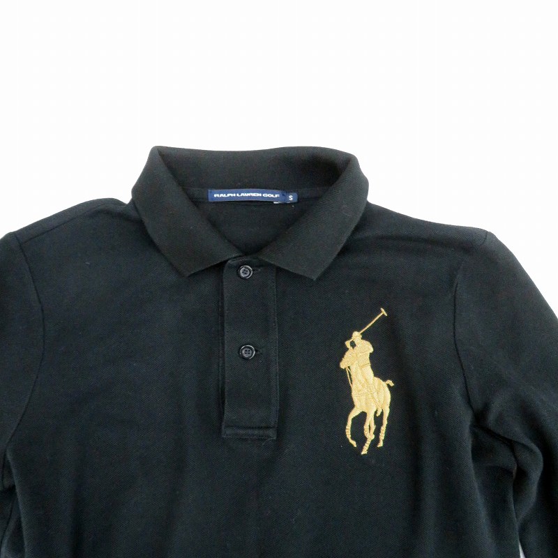 • ラルフローレン RALPH LAUREN GOLF ゴルフウエア ポロシャツ ポロカラー 長袖 ビッグポニー S 黒 ブラック ゴールド色 /HO11 ■GY53 レディース