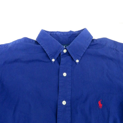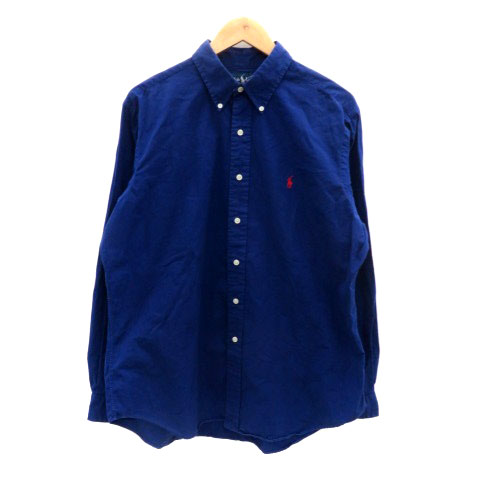 • ラルフローレン RALPH LAUREN カジュアルシャツ ボタンダウン 長袖 ロゴ刺繍 L 青 ブルー 赤 レッド /HO1 ■GY53 メンズ