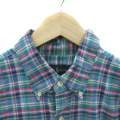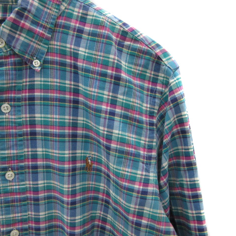 ラルフローレン RALPH LAUREN カジュアルシャツ 長袖 チェック柄 L マルチカラー 黄緑 ライトグリーン /YS15 ■GY53 メンズ