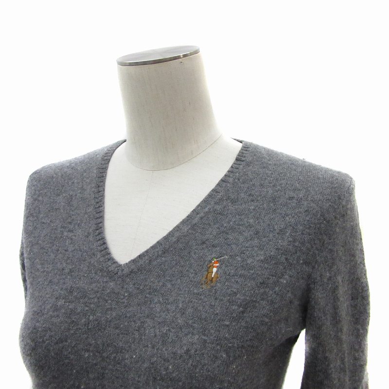 • ラルフローレン RALPH LAUREN ニット カットソー 長袖 Vネック ウール カシミヤ混 S グレー /YS27 ■GY53 レディース