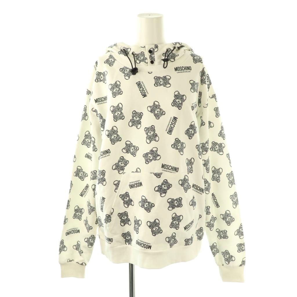 未使用品 モスキーノ MOSCHINO テディベア パーカー スウェット トレーナー 総柄 S ホワイト ブラック /ES ■GY20 レディース