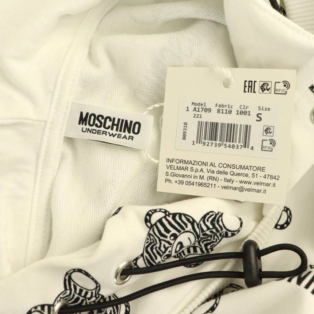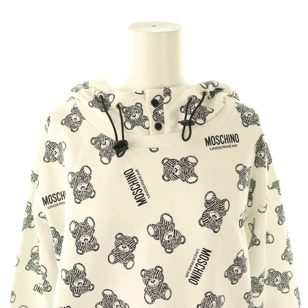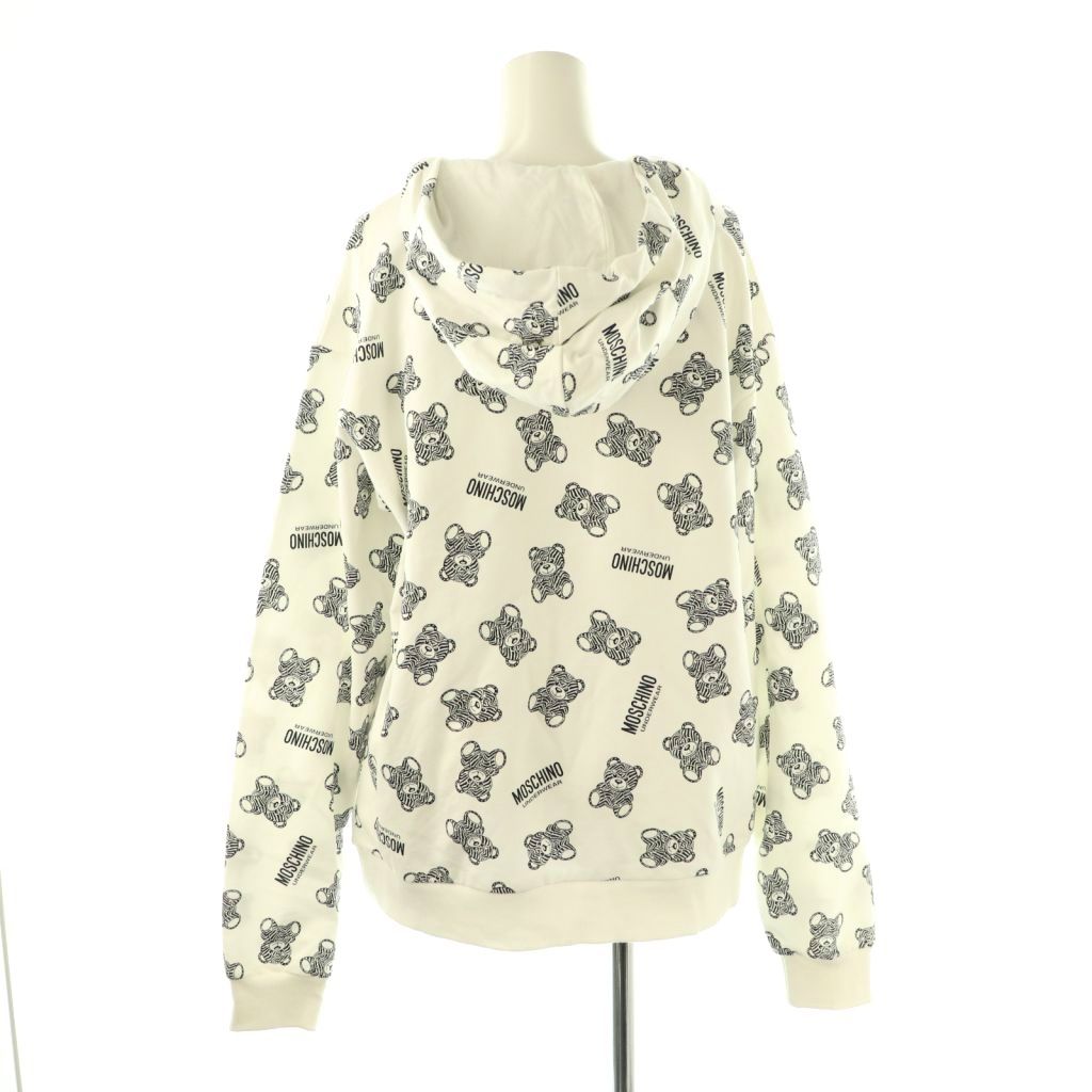 • 未使用品 モスキーノ MOSCHINO テディベア パーカー スウェット トレーナー 総柄 S ホワイト ブラック /ES ■GY20 レディース