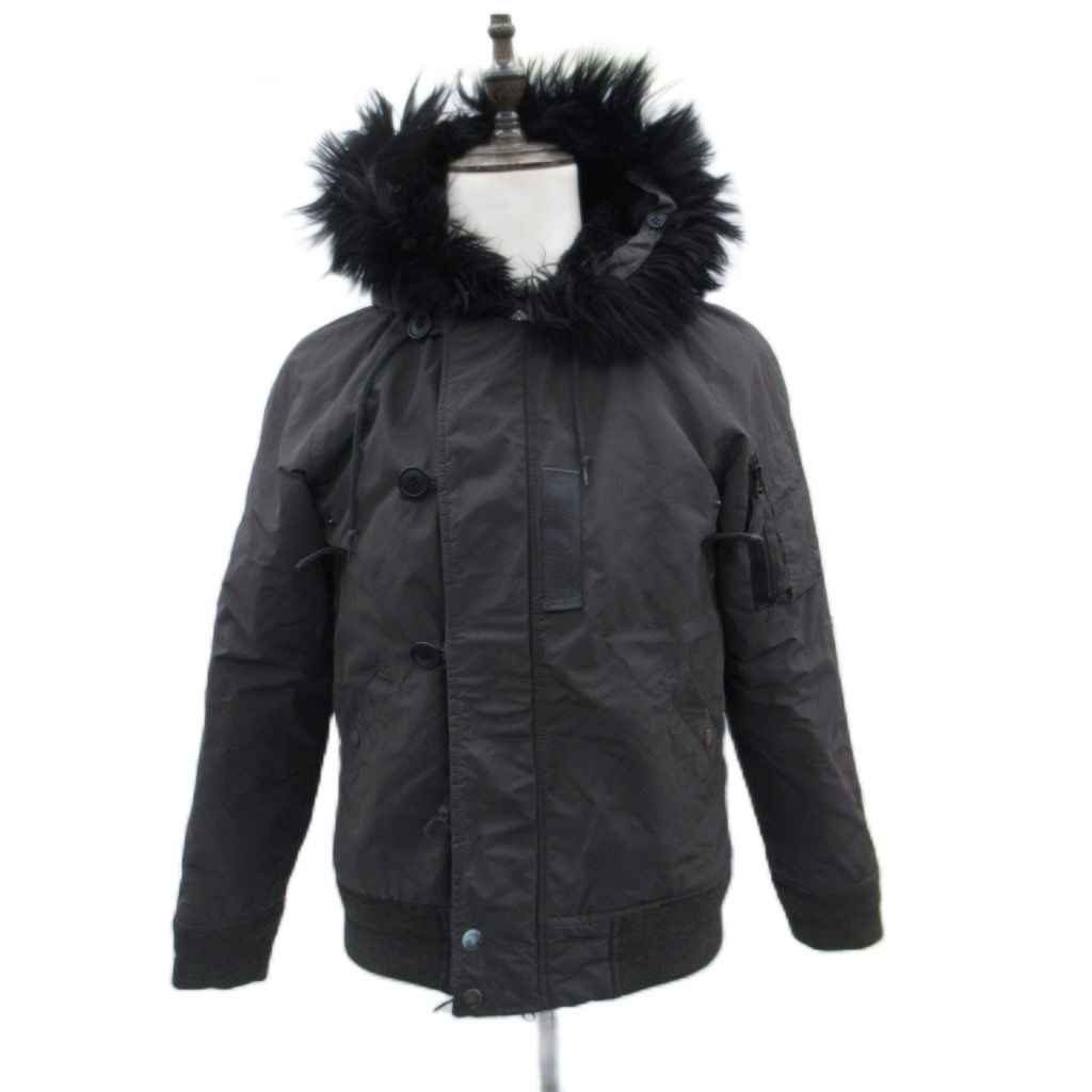 ショット SCHOTT N-2B フライトジャケット 中綿 ミドル丈 ラクーンファー フード 38 M 黒 ブラック /SM12 ■GY61 メンズ