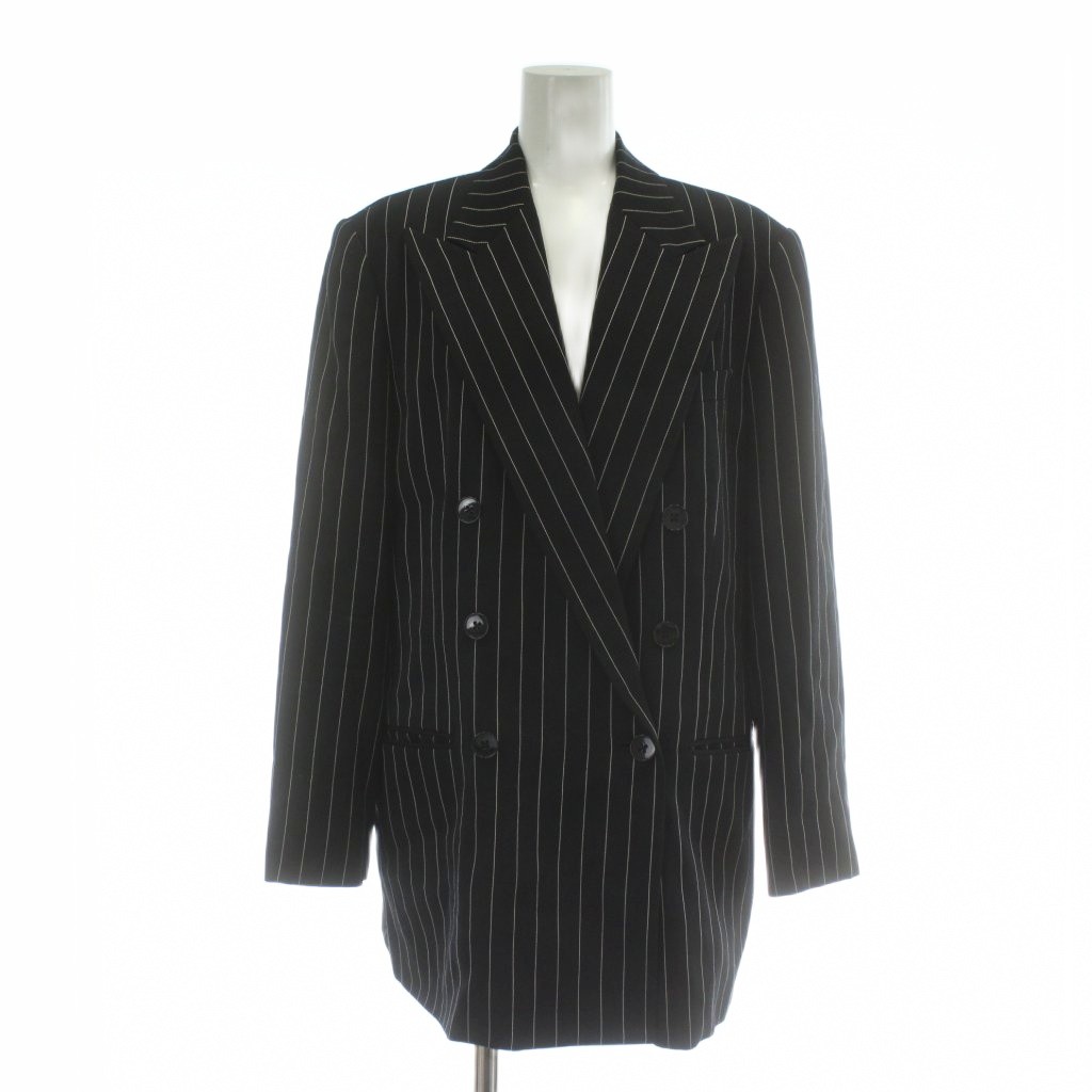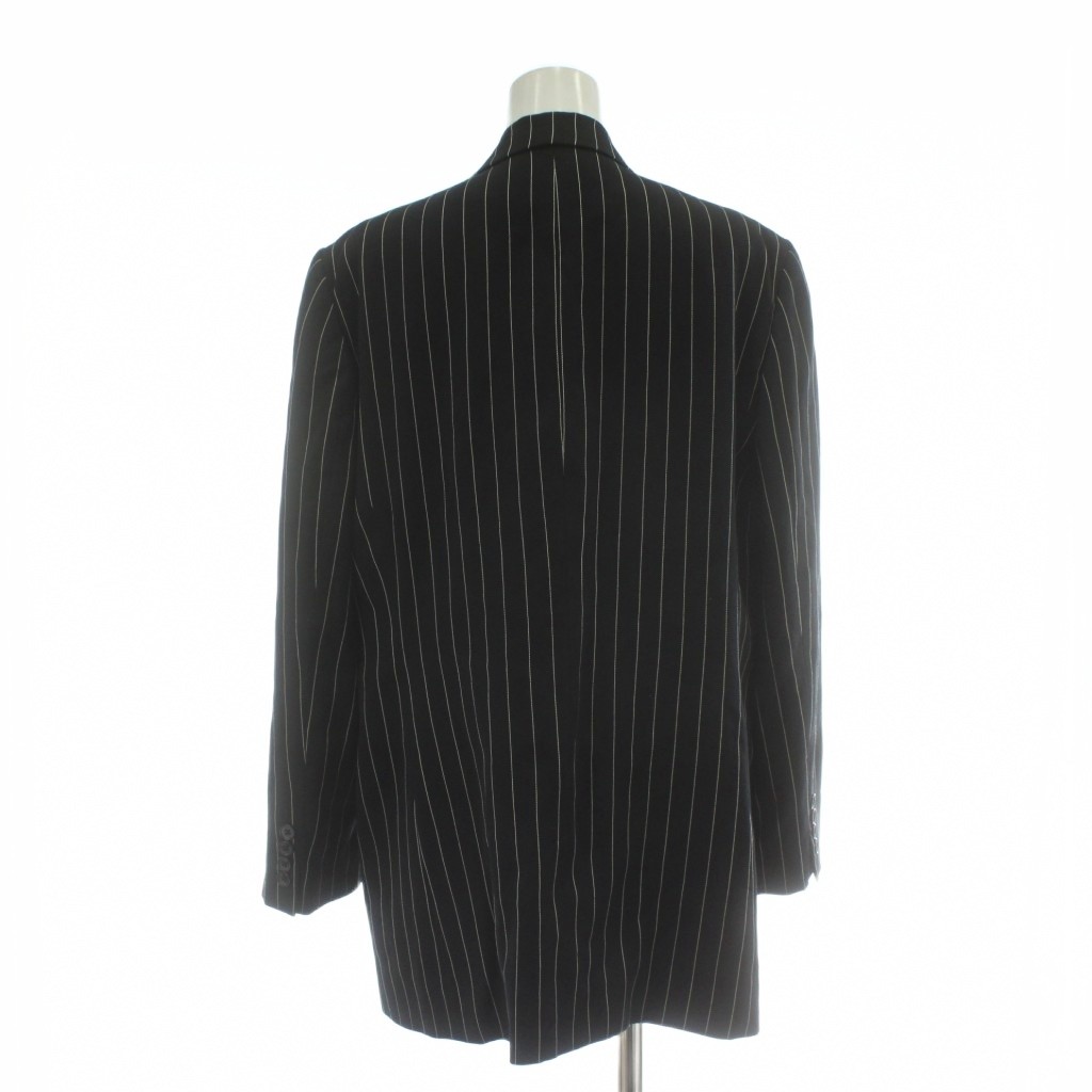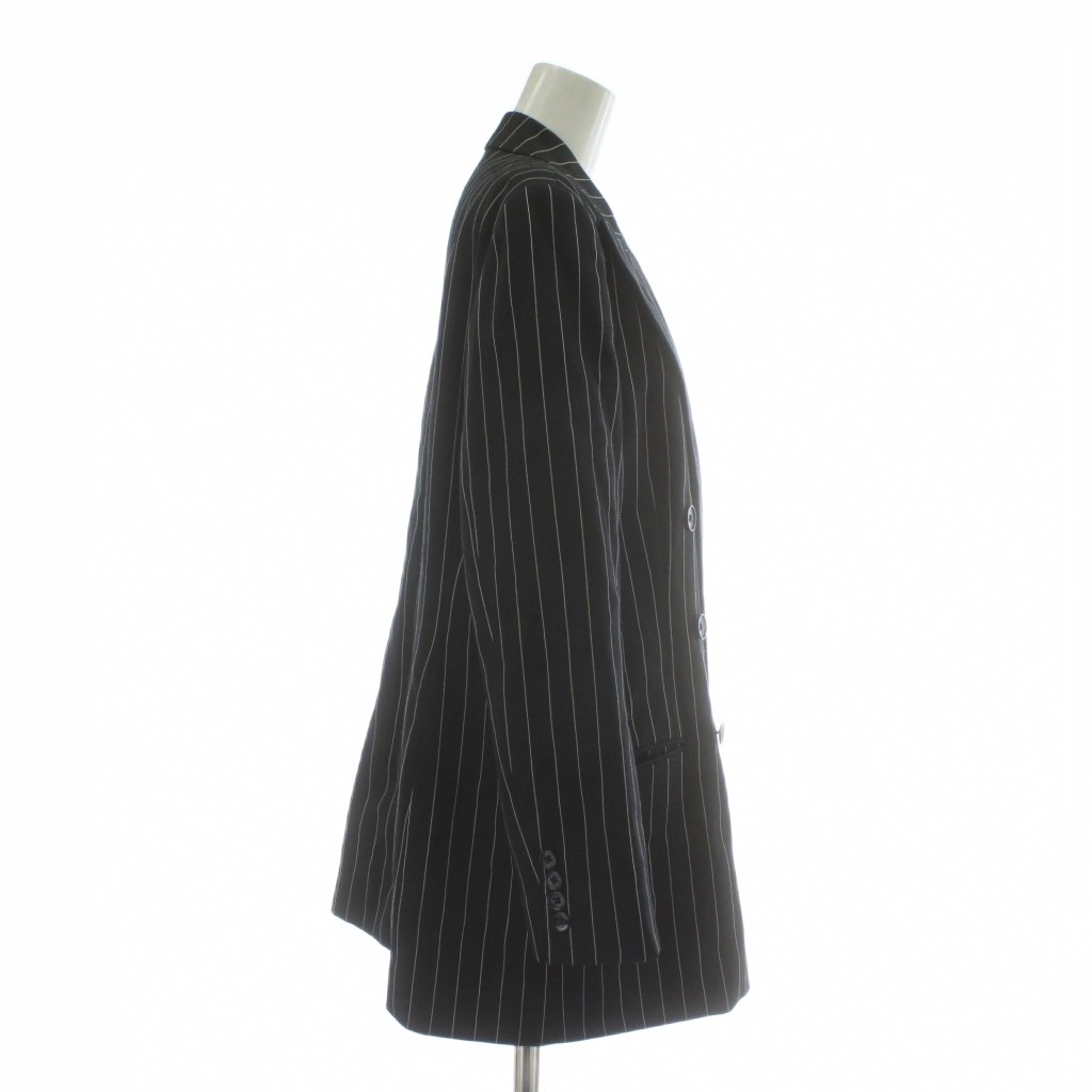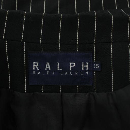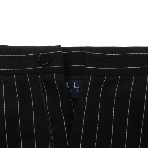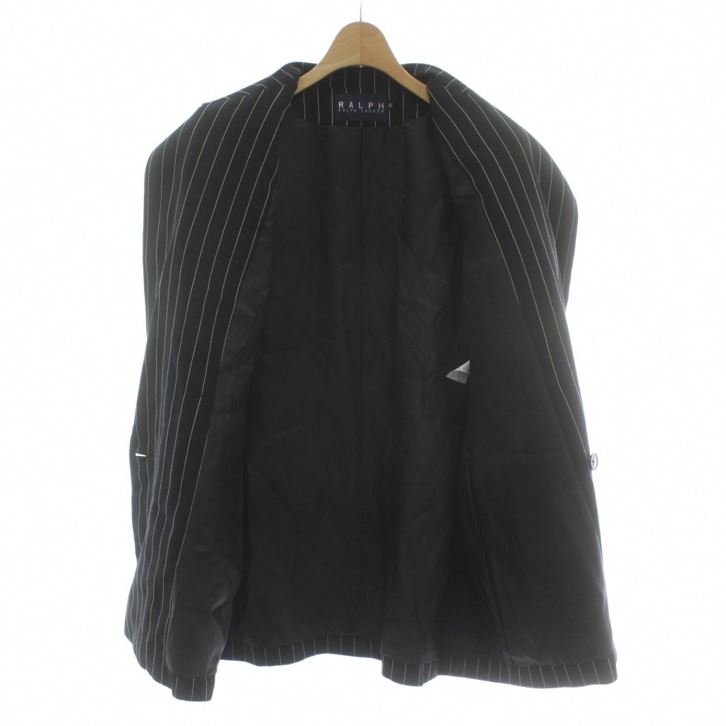 ラルフローレン RALPH LAUREN スーツ セットアップ 上下 テーラードジャケット ダブル 6B 総裏地 ノーベント パンツ スラックス ウール ストライプ 大きいサイズ 17 15 LL 黒 ブラック 白 ホワイト /XZ レディース