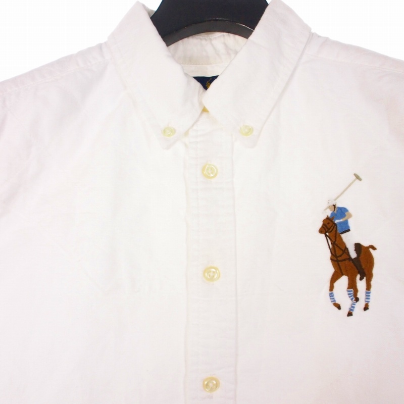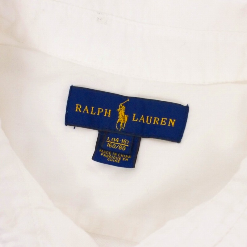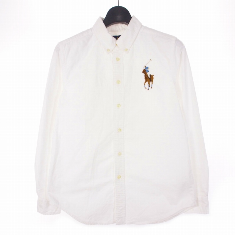ラルフローレン RALPH LAUREN 刺繍ロゴ オックスフォードシャツ ブラウス 長袖 L ホワイト 白 レディース
