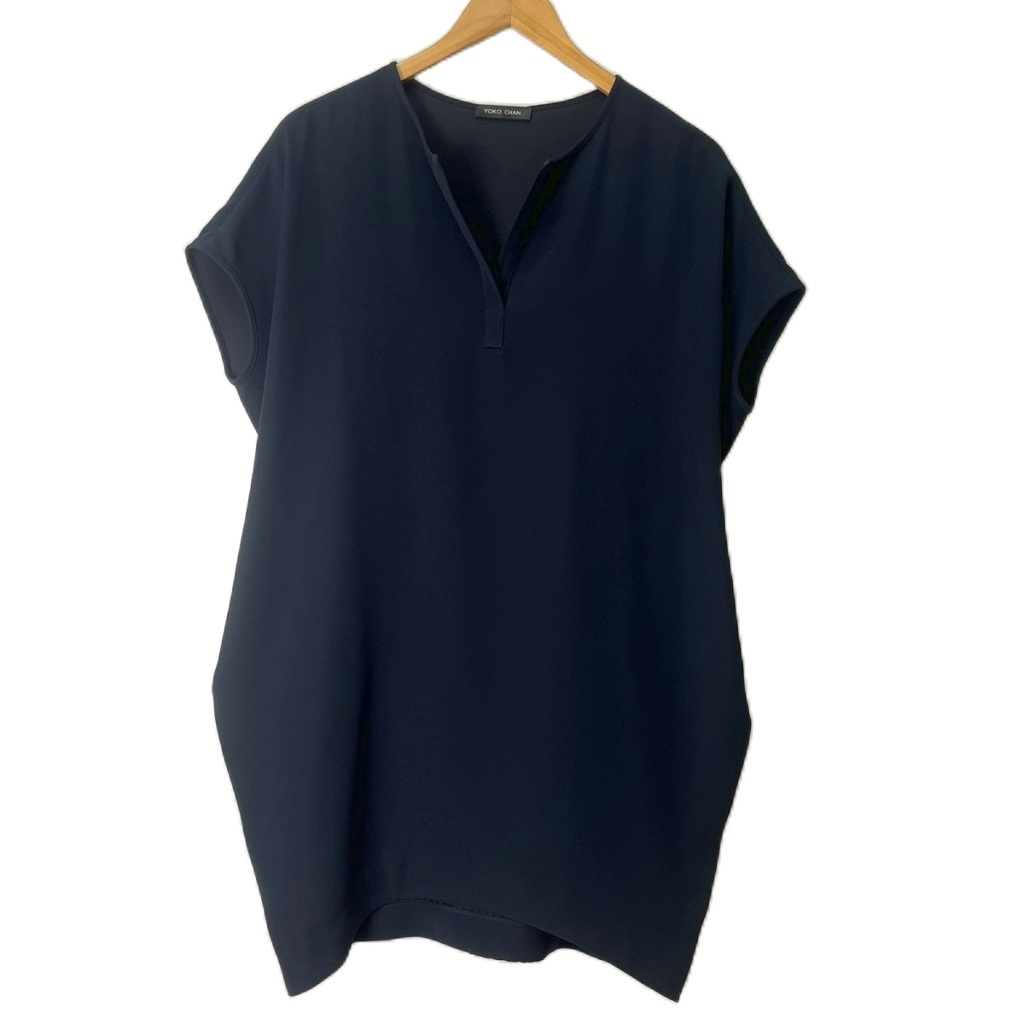 ヨーコチャン YOKO CHAN スキッパーコクーン ワンピース ノースリーブ ひざ丈 F 紺 ネイビー YCD-118-333 レディース