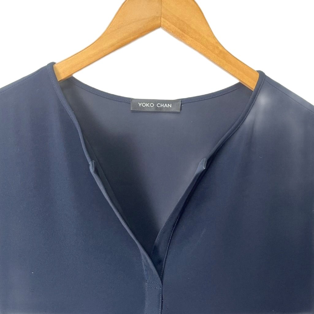 • ヨーコチャン YOKO CHAN スキッパーコクーン ワンピース ノースリーブ ひざ丈 F 紺 ネイビー YCD-118-333 レディース
