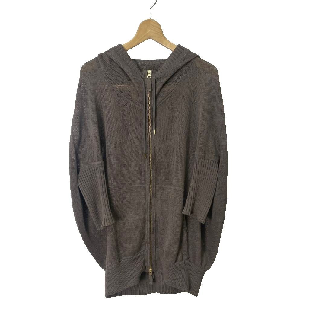 • イリアンローブ iliann loeb リネン ニット パーカー ブルゾン ダブルジップ 七分袖 半端袖 グレー系 レディース