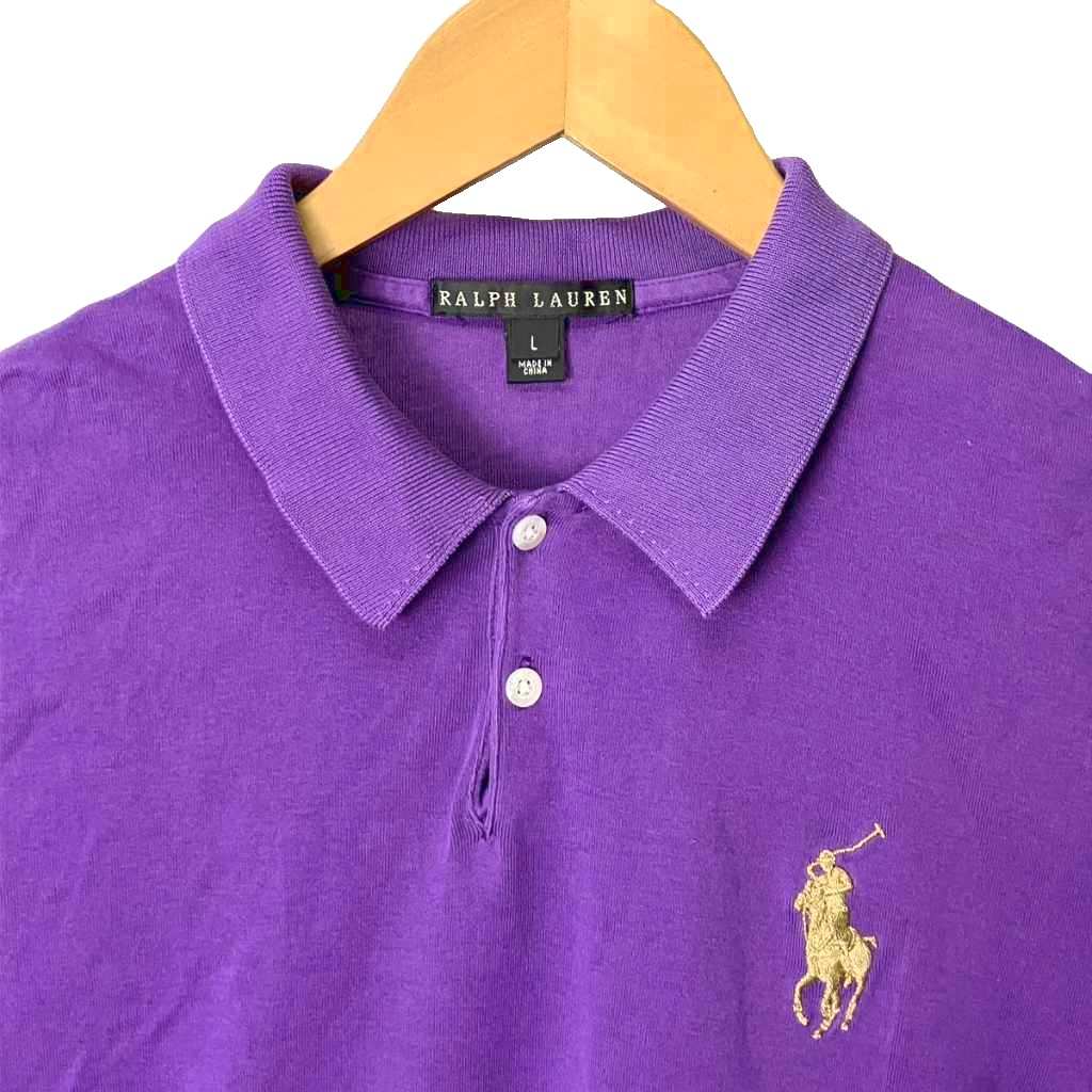 • ラルフローレン RALPH LAUREN ポロシャツ 刺繍入り 半袖 カットソー シャツ L 紫 パープル ■GY14 レディース