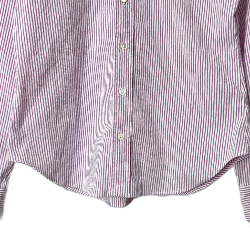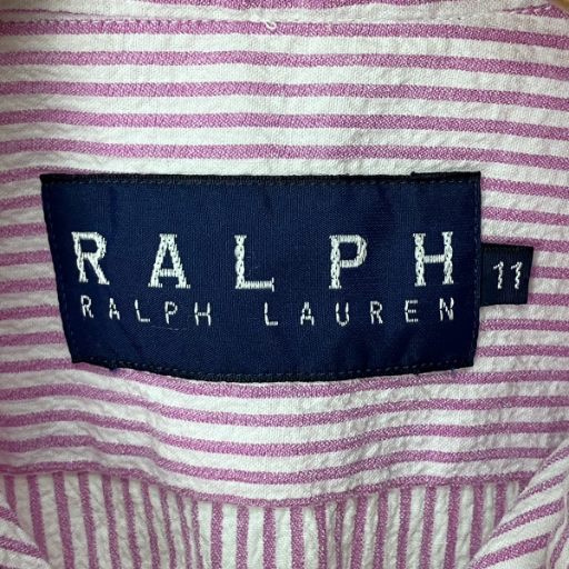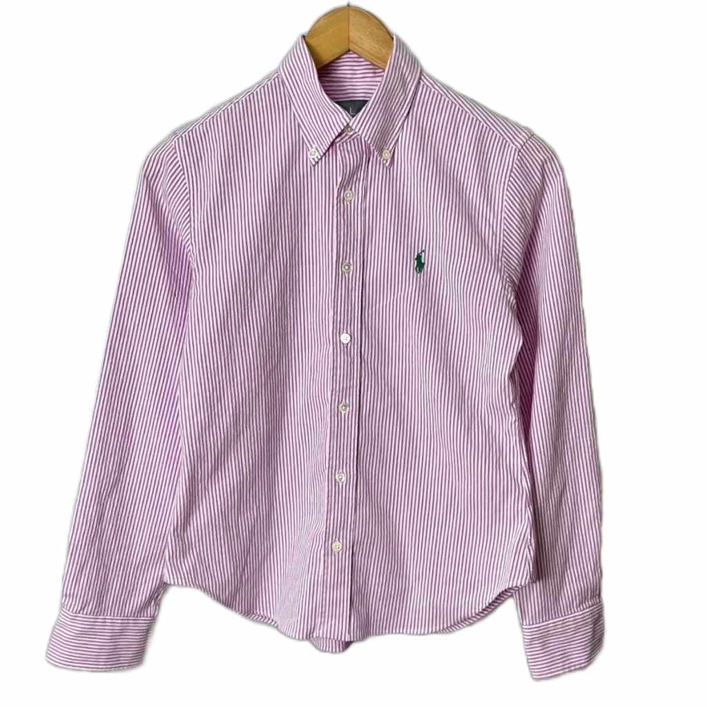 • ラルフローレン RALPH LAUREN ストライプ柄 長袖 シャツ ボタンダウン カジュアルシャツ 11 L パープル ホワイト ■GY14 レディース