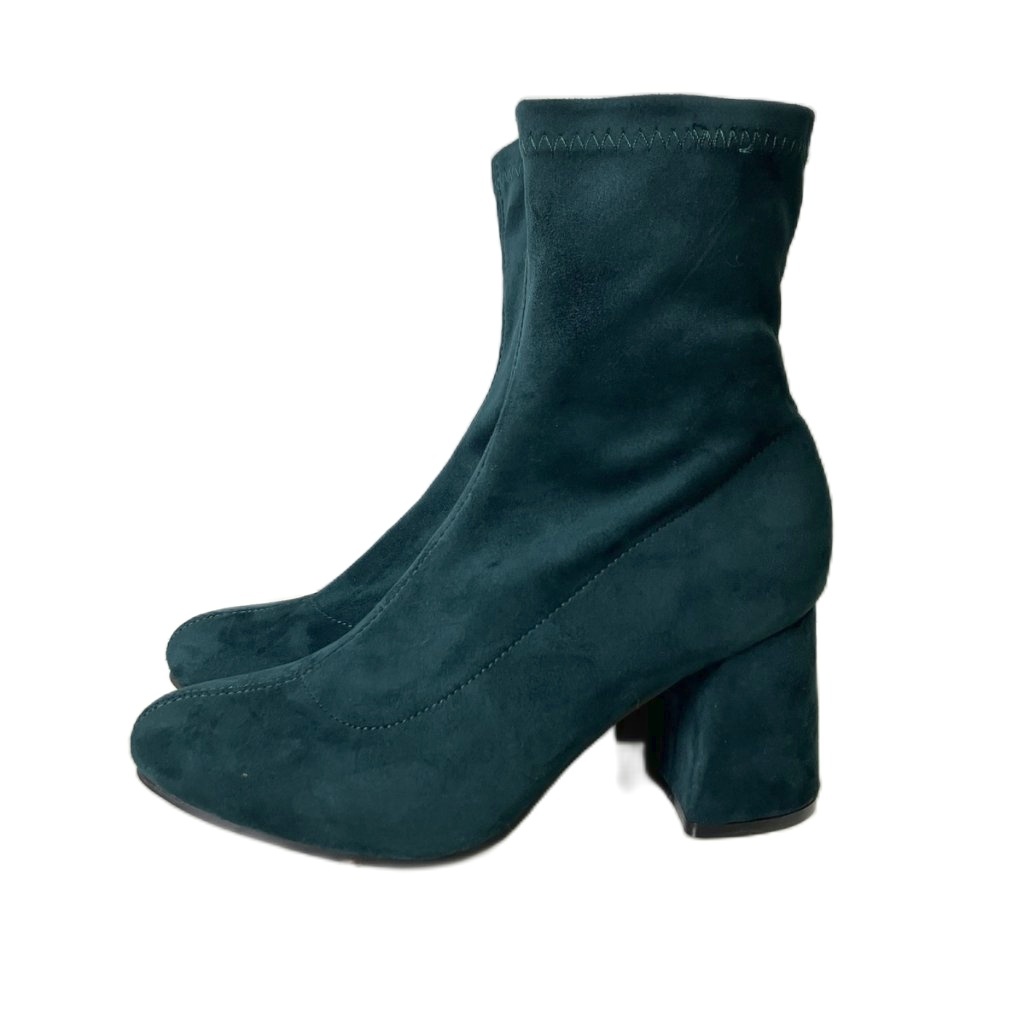 • インデックス INDEX スエードタッチ ヒール ショートブーツ L グリーン レディース
