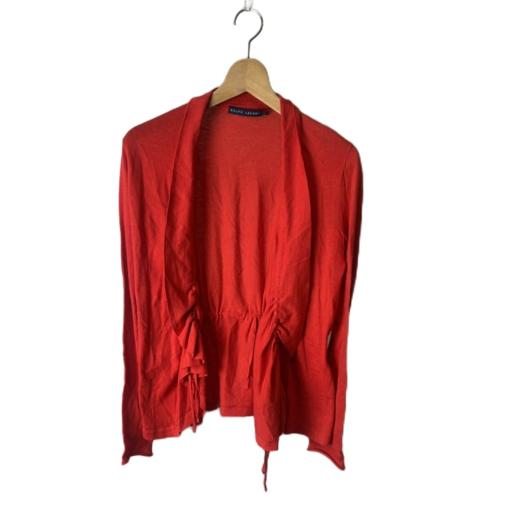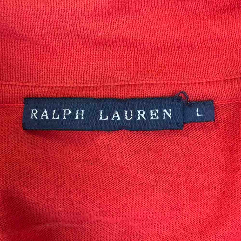 • ラルフローレン RALPH LAUREN カーディガン 長袖 L 赤 レッド ■GY43 レディース