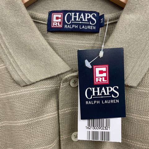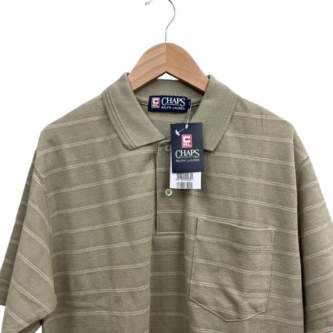 • チャップス CHAPS ポロシャツ タグ付き Mサイズ カーキ ストライプ柄  メンズ