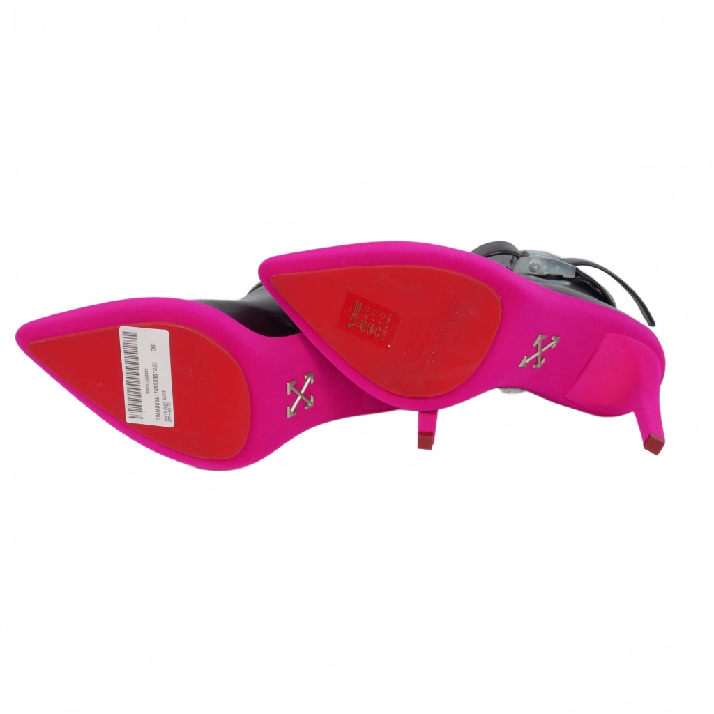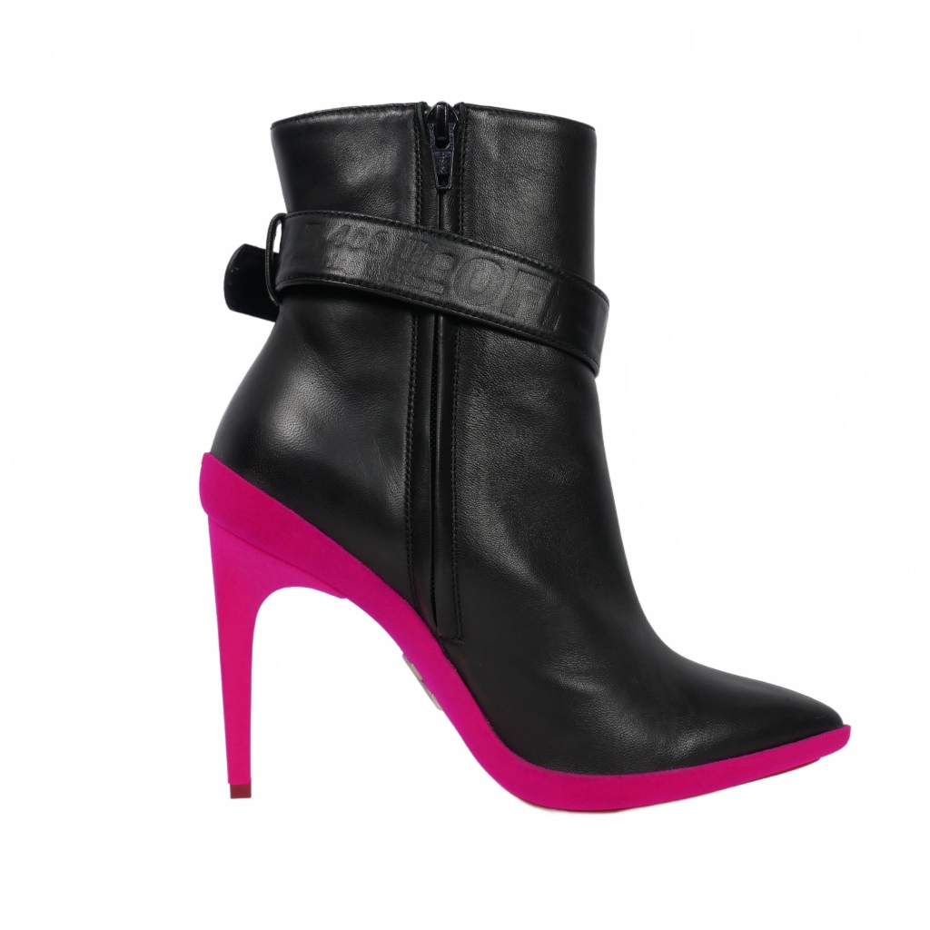 • オフホワイト OFF WHITE ヒール サイドジップ アンクル ブーツ 36 黒 レディース