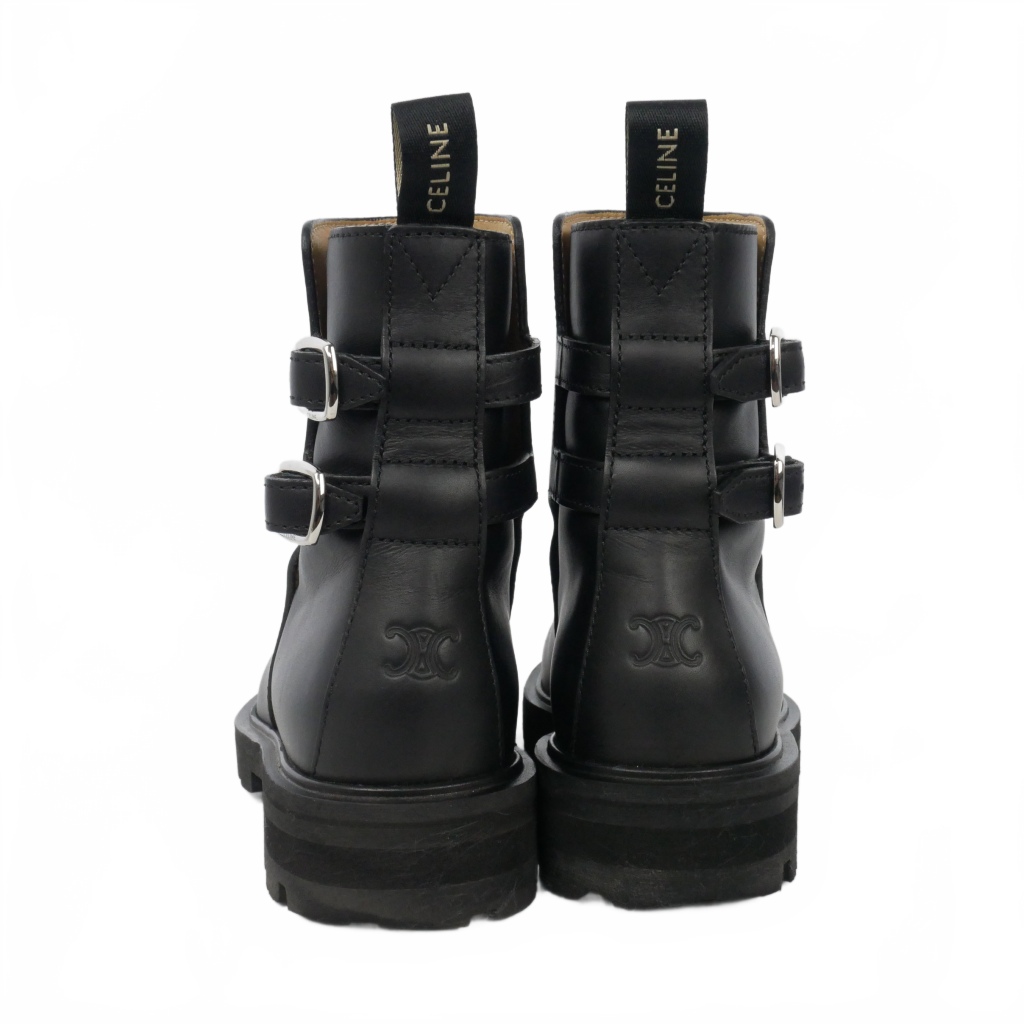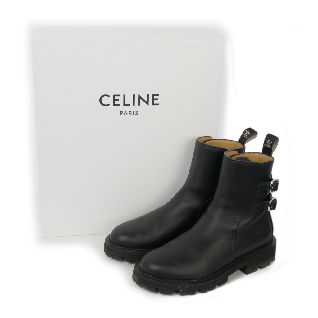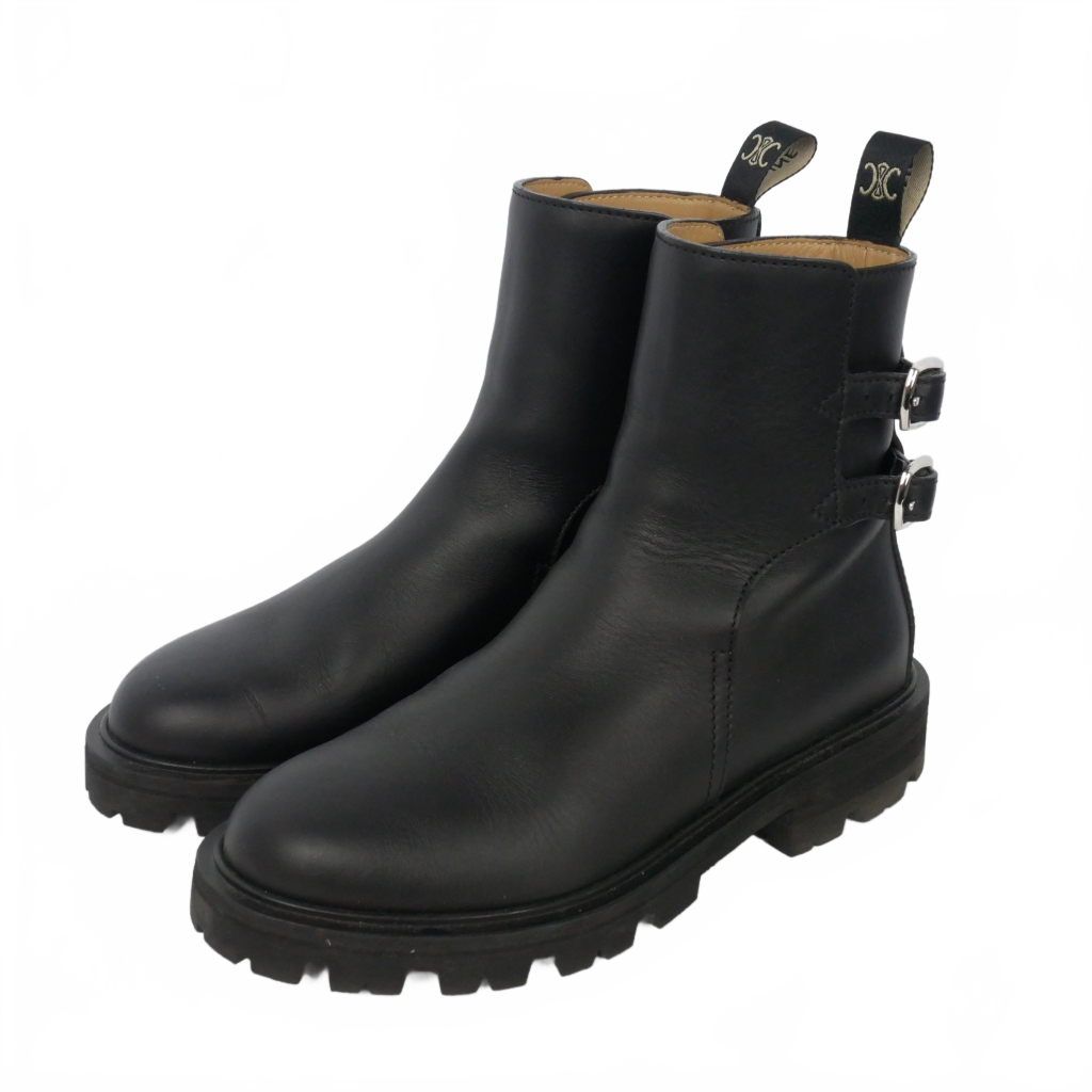• セリーヌ CELINE マーガレット ダブルバックル チェルシーブーツ ショートブーツ 36 黒 ブラック レディース