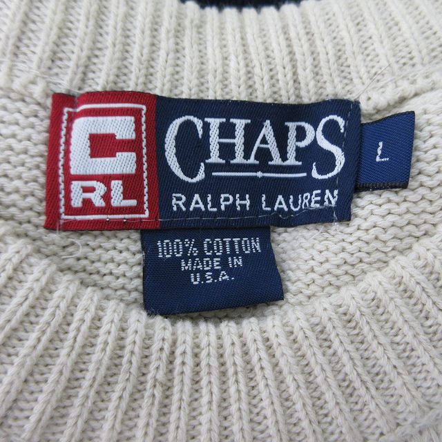• チャップス CHAPS 長袖 ニット セーター ホワイト ネイビー L S192 1215 メンズ