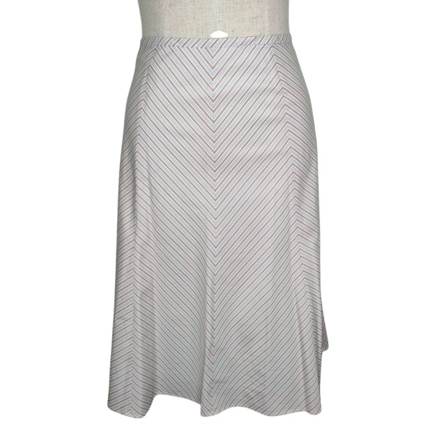 • エフデ ef-de スカート フレア ストライプ ひざ丈 9 Sサイズ相当 ホワイト ブルー レッド k1994 0511 レディース