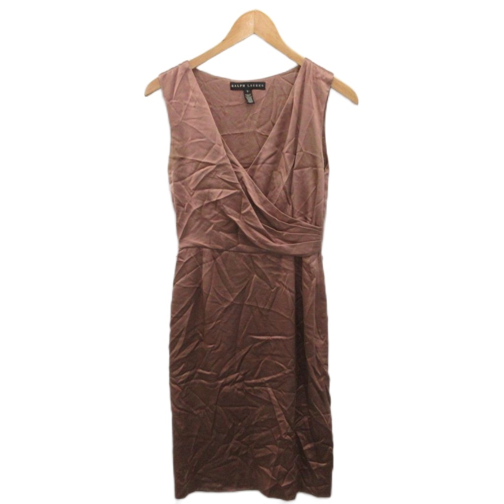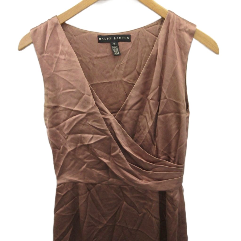 • ラルフローレン RALPH LAUREN ワンピース ノースリーブ ミモレ ロング 絹 シルク100% 0 ピンクベージュ ■MET2 レディース