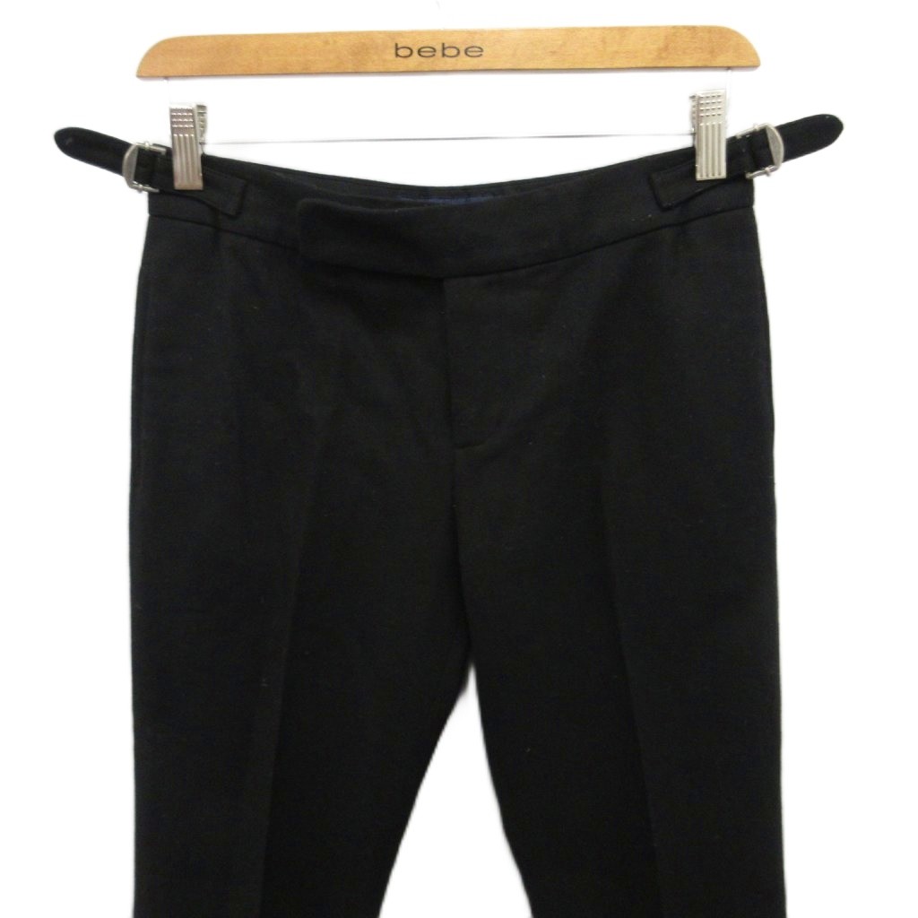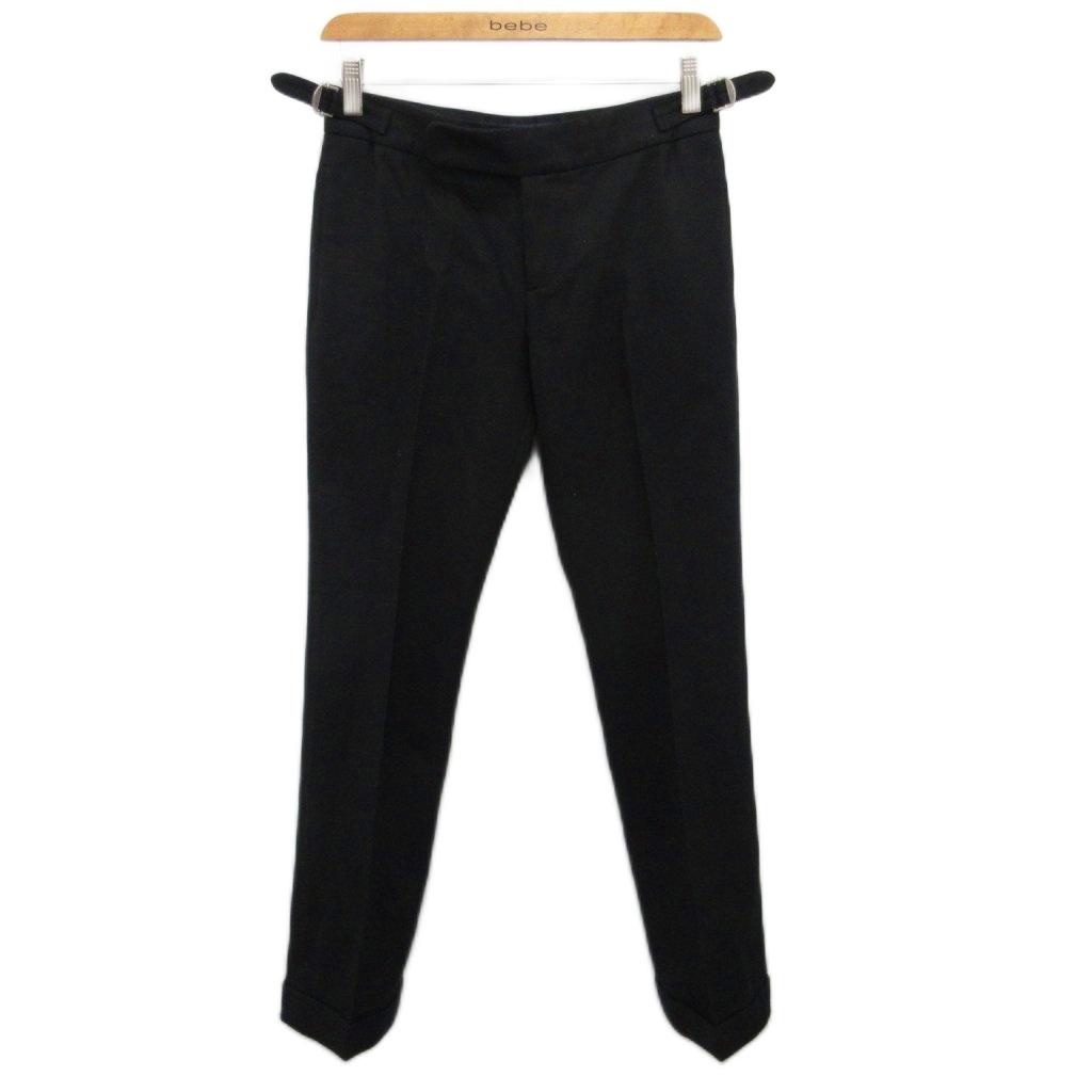 ラルフローレン RALPH LAUREN スラックス ウールパンツ センタープレス テーパード スリム 7 黒 ブラック ■MET2 レディース