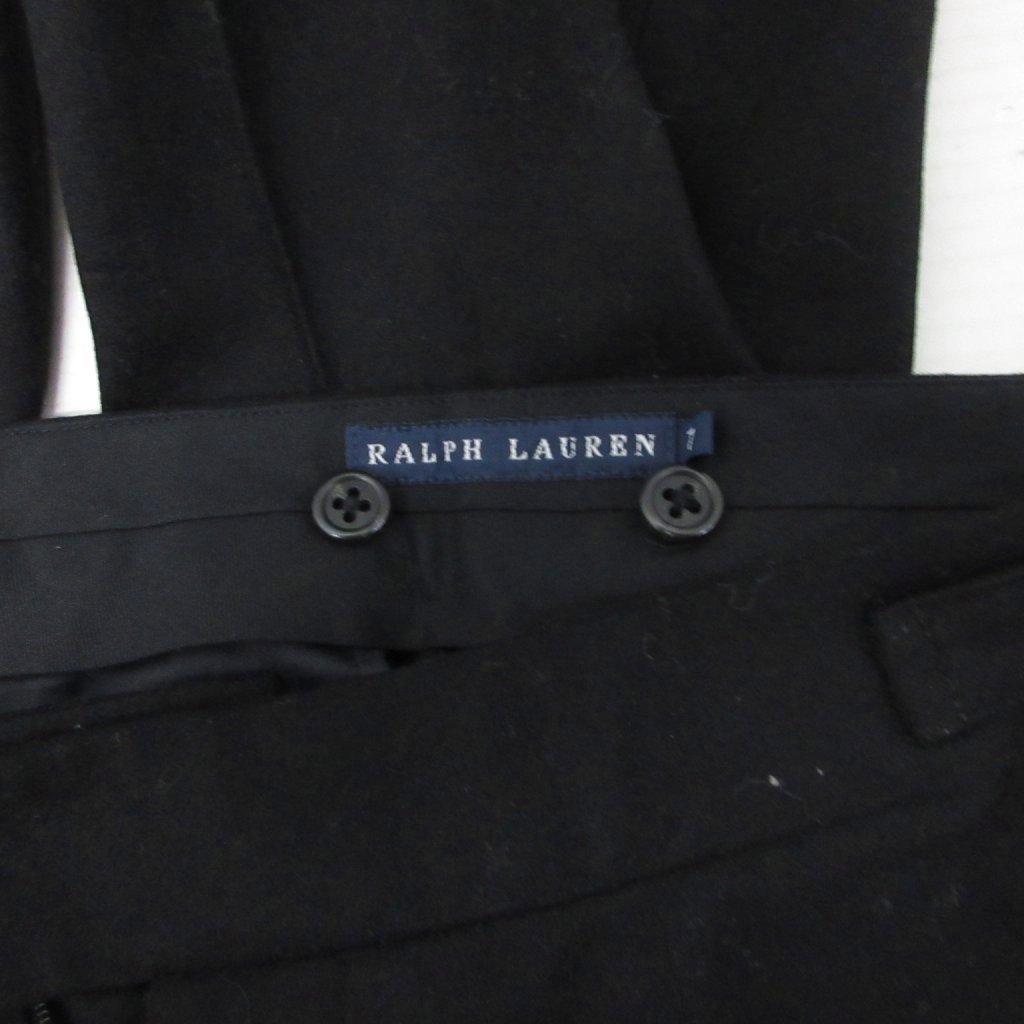 • ラルフローレン RALPH LAUREN スラックス ウールパンツ センタープレス テーパード スリム 7 黒 ブラック ■MET2 レディース