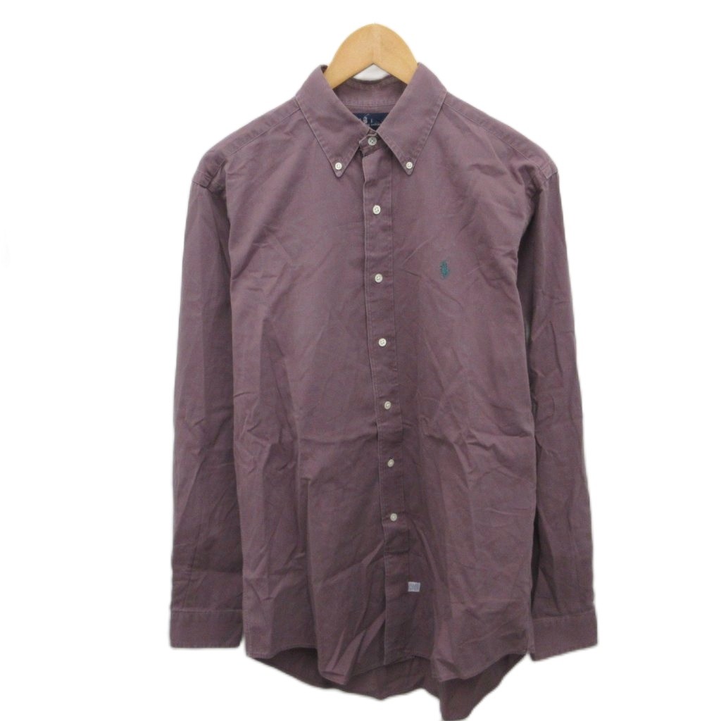 ラルフローレン RALPH LAUREN ボタンダウンシャツ BDシャツ 長袖 ポニー刺繍 オーバーサイズ M 紫 パープル ☆AA★ ■MET2 メンズ