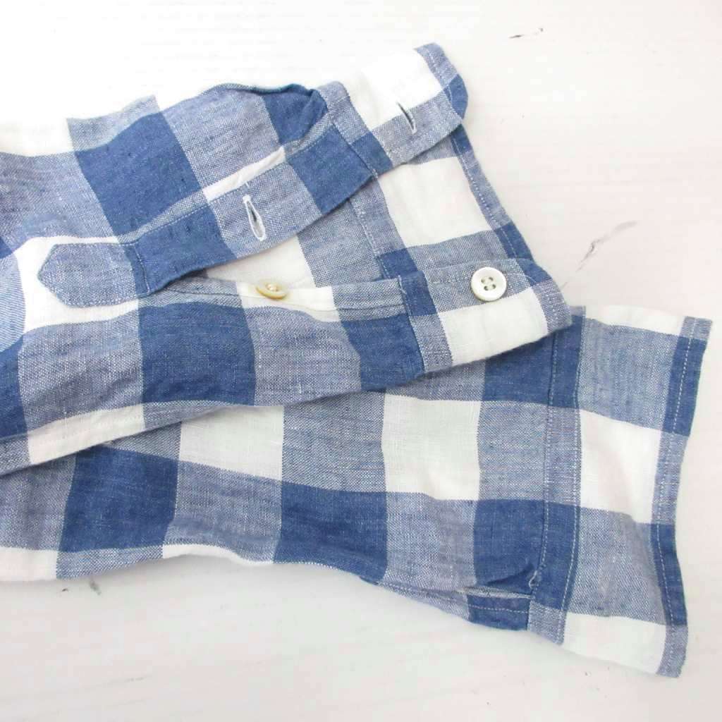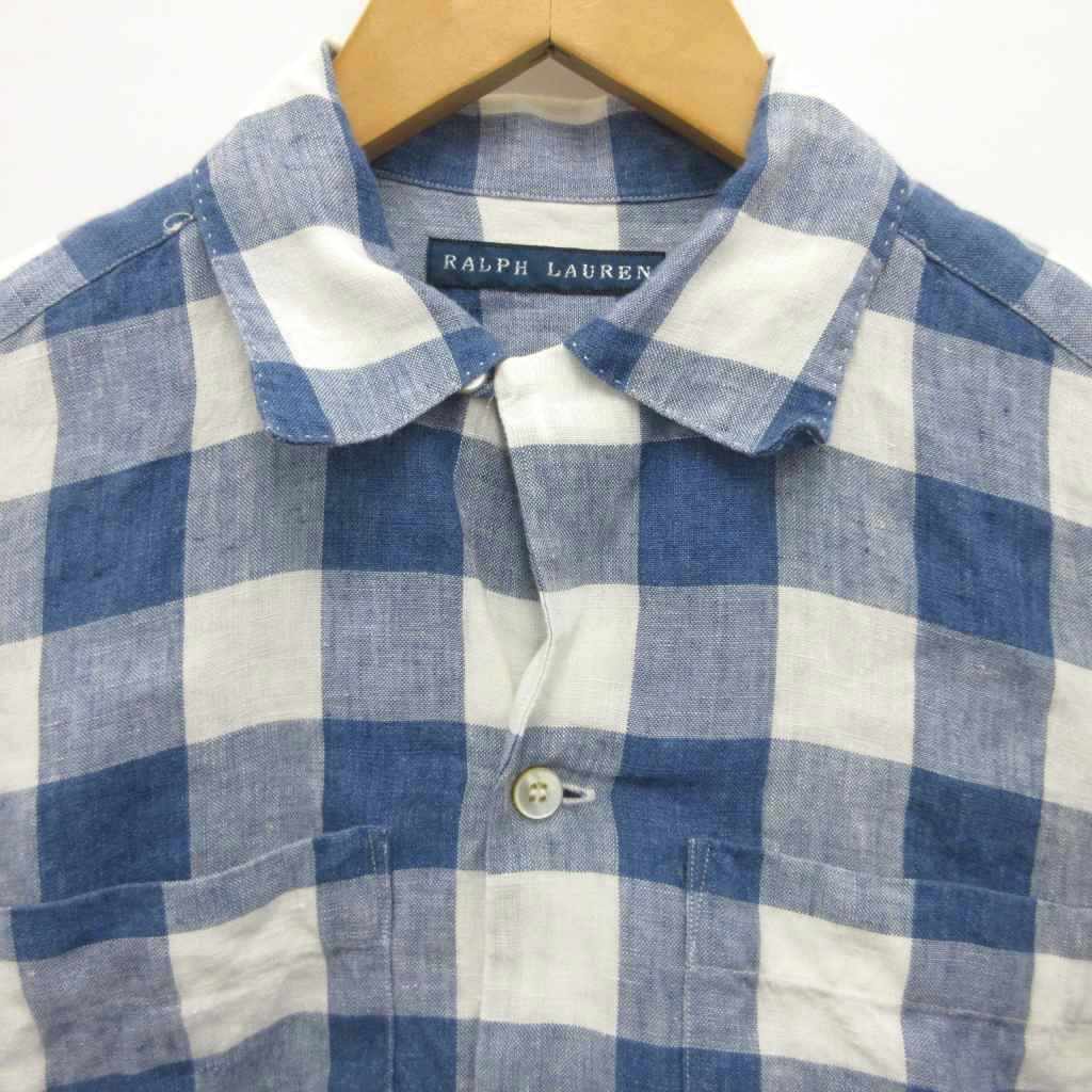 • ラルフローレン RALPH LAUREN リネンシャツ チェック 長袖 青 ブルー 160 ■MET2 キッズ