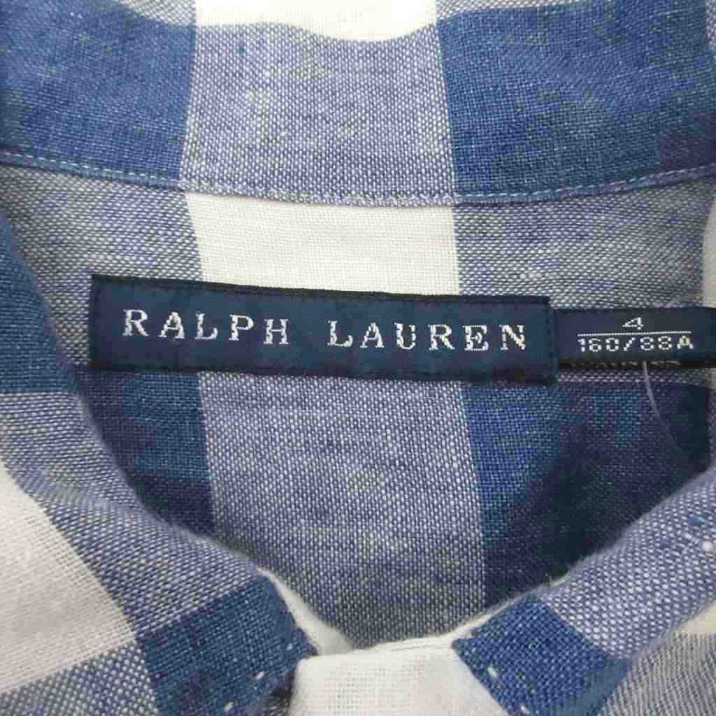 ラルフローレン RALPH LAUREN リネンシャツ チェック 長袖 青 ブルー 160 ■MET2 キッズ