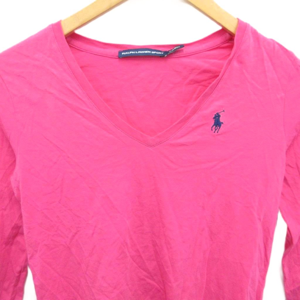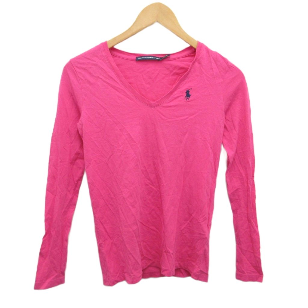 • ラルフローレン RALPH LAUREN カットソー Tシャツ Vネック ポニー刺繡 ピンク XS ■YHS5 レディース
