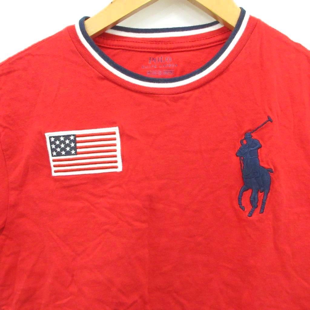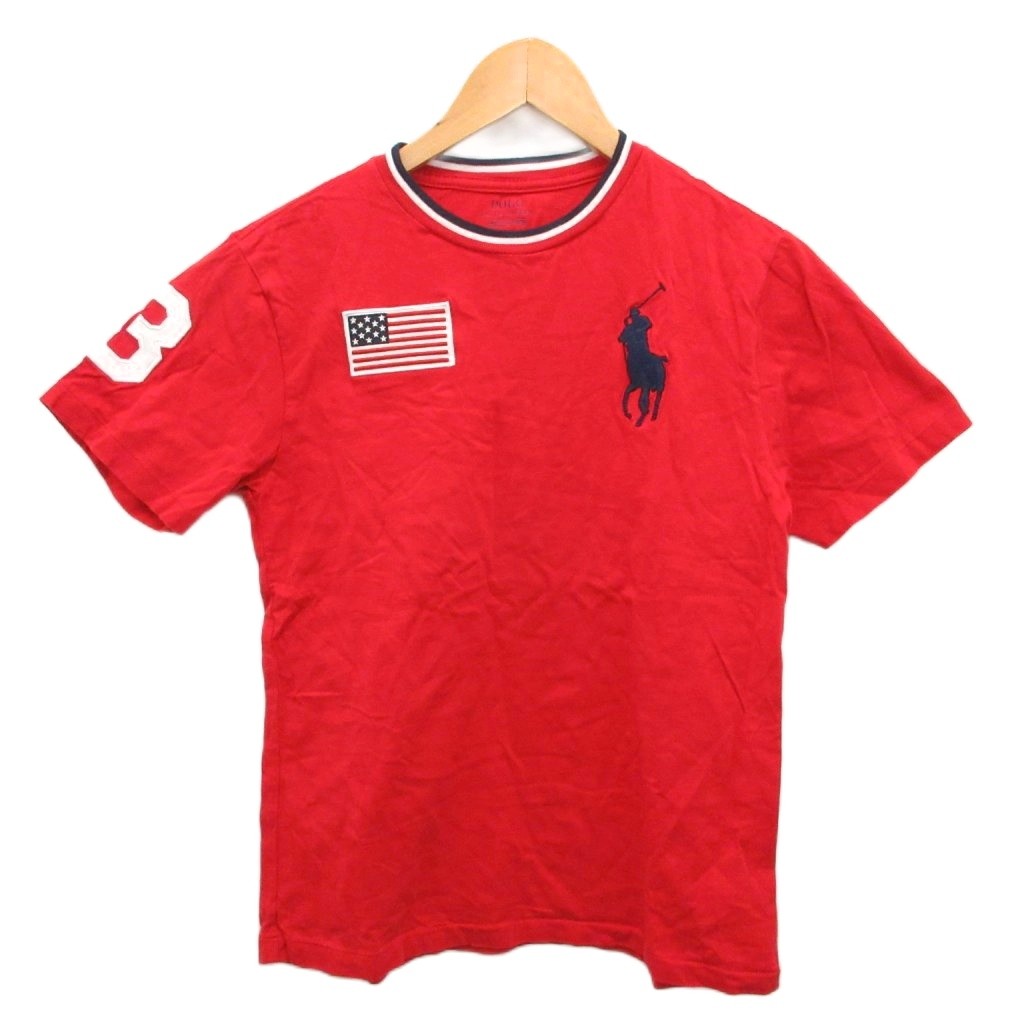 • ポロ ラルフローレン POLO RALPH LAUREN Tシャツ 半袖 ポニー刺繡 アメリカ国旗 赤 レッド M レディース