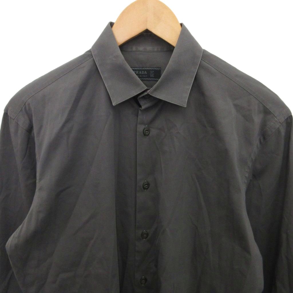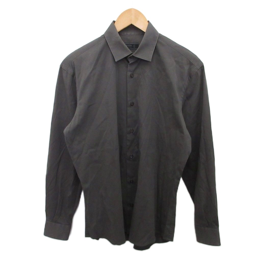 • プラダ PRADA シャツ ドレスシャツ 長袖 ストレッチ素材 グレー 約S ■IBO90 メンズ