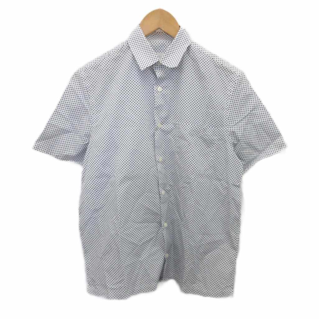 プラダ PRADA 美品 シャツ ドレスシャツ 半袖 ドット 白 ホワイト 約S ■IBO90 メンズ