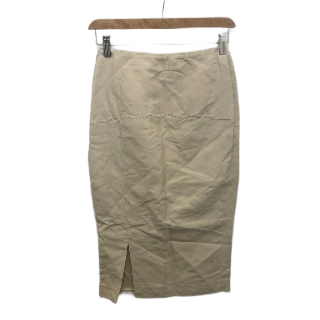 • プラダ PRADA タイトスカート ミモレ ロング 絹 シルク混 38 ベージュ ■IBO90 レディース