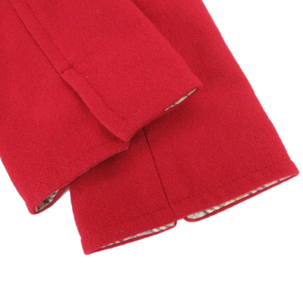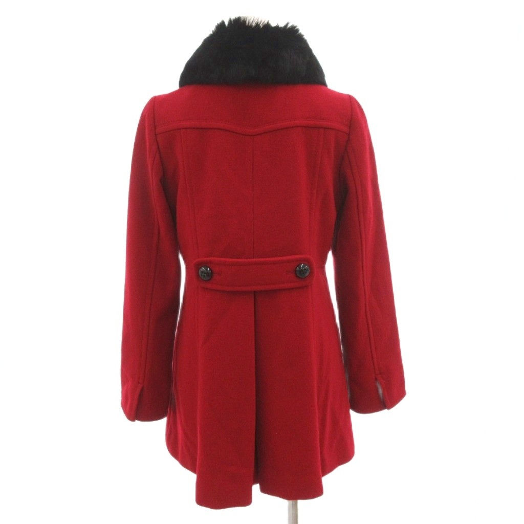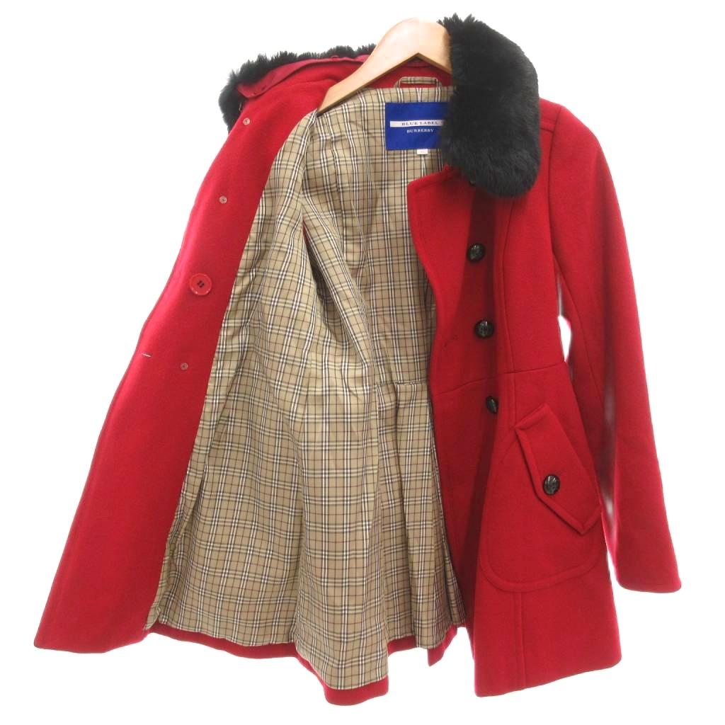 バーバリーブルーレーベル BURBERRY BLUE LABEL Pコート ピーコート ラビットファー ダブル 裏地チェック ミドル ハーフ丈 36 XS 赤 レッド /AE ■GY47 レディース