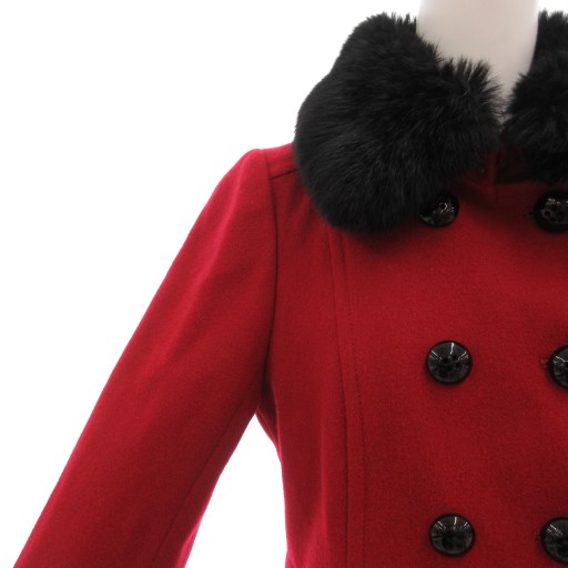• バーバリーブルーレーベル BURBERRY BLUE LABEL Pコート ピーコート ラビットファー ダブル 裏地チェック ミドル ハーフ丈 36 XS 赤 レッド /AE ■GY47 レディース