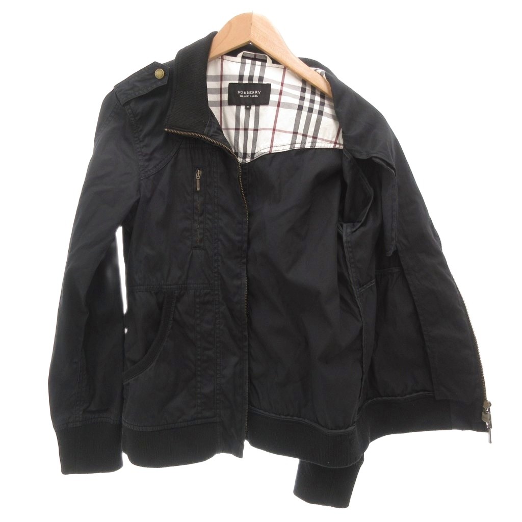 • バーバリーブラックレーベル BURBERRY BLACK LABEL ジャケット ブルゾン ジップアップ  裏地チェックエポレット M 黒 ブラック /AE ■GY47 メンズ