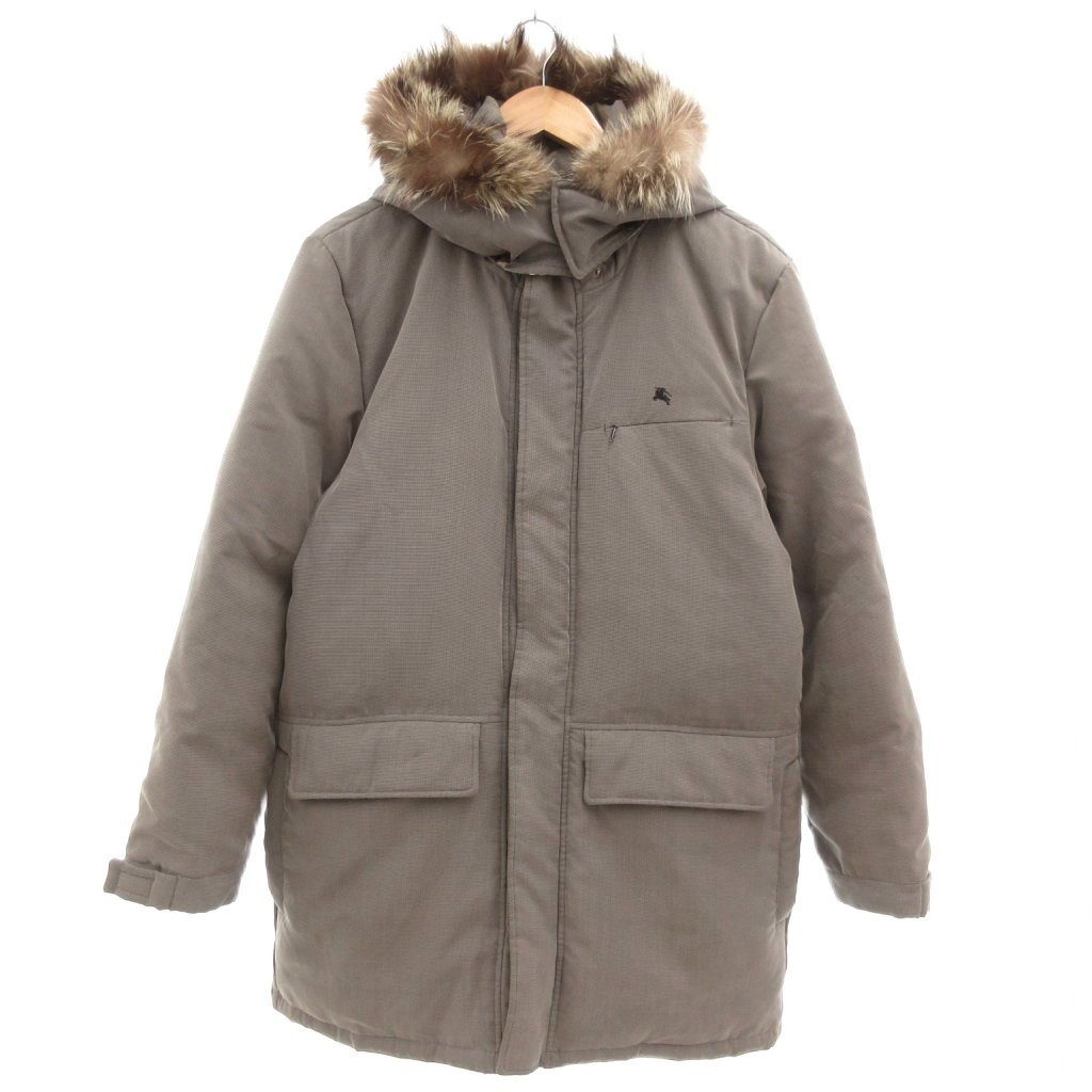• バーバリーブラックレーベル BURBERRY BLACK LABEL ダウンジャケット フォックスファー フード ロゴ刺繍 M グレージュ /AE ■GY47 メンズ