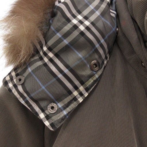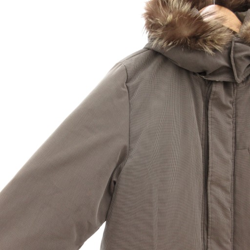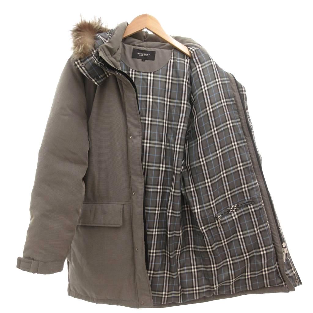 バーバリーブラックレーベル BURBERRY BLACK LABEL ダウンジャケット フォックスファー フード ロゴ刺繍 M グレージュ /AE ■GY47 メンズ
