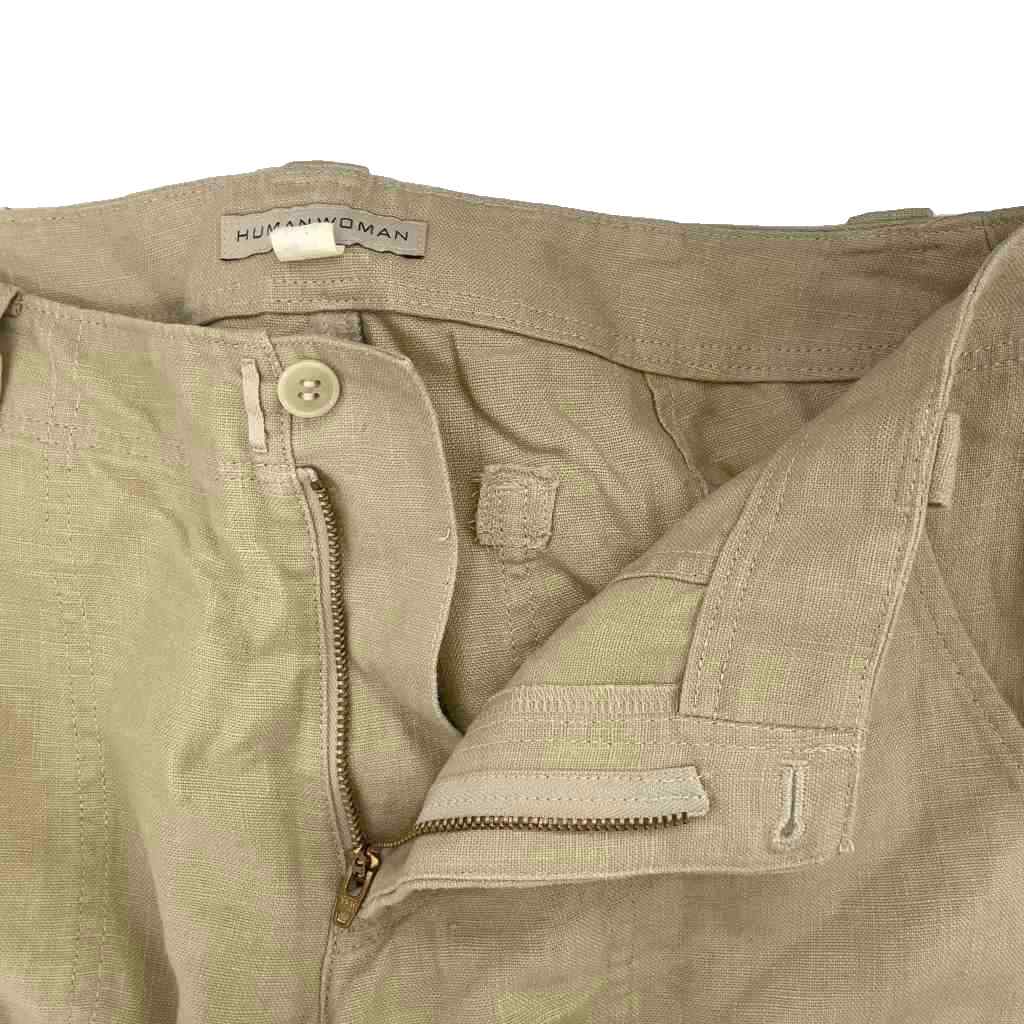• ヒューマンウーマン HUMAN WOMAN カーゴパンツ 麻 リネン100% M ベージュ 077-130129 ■YHS3 レディース