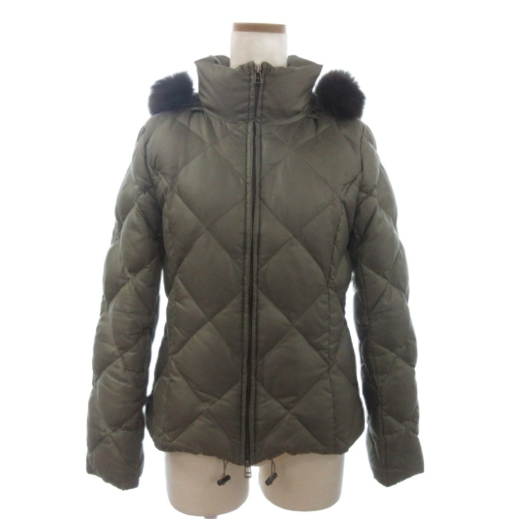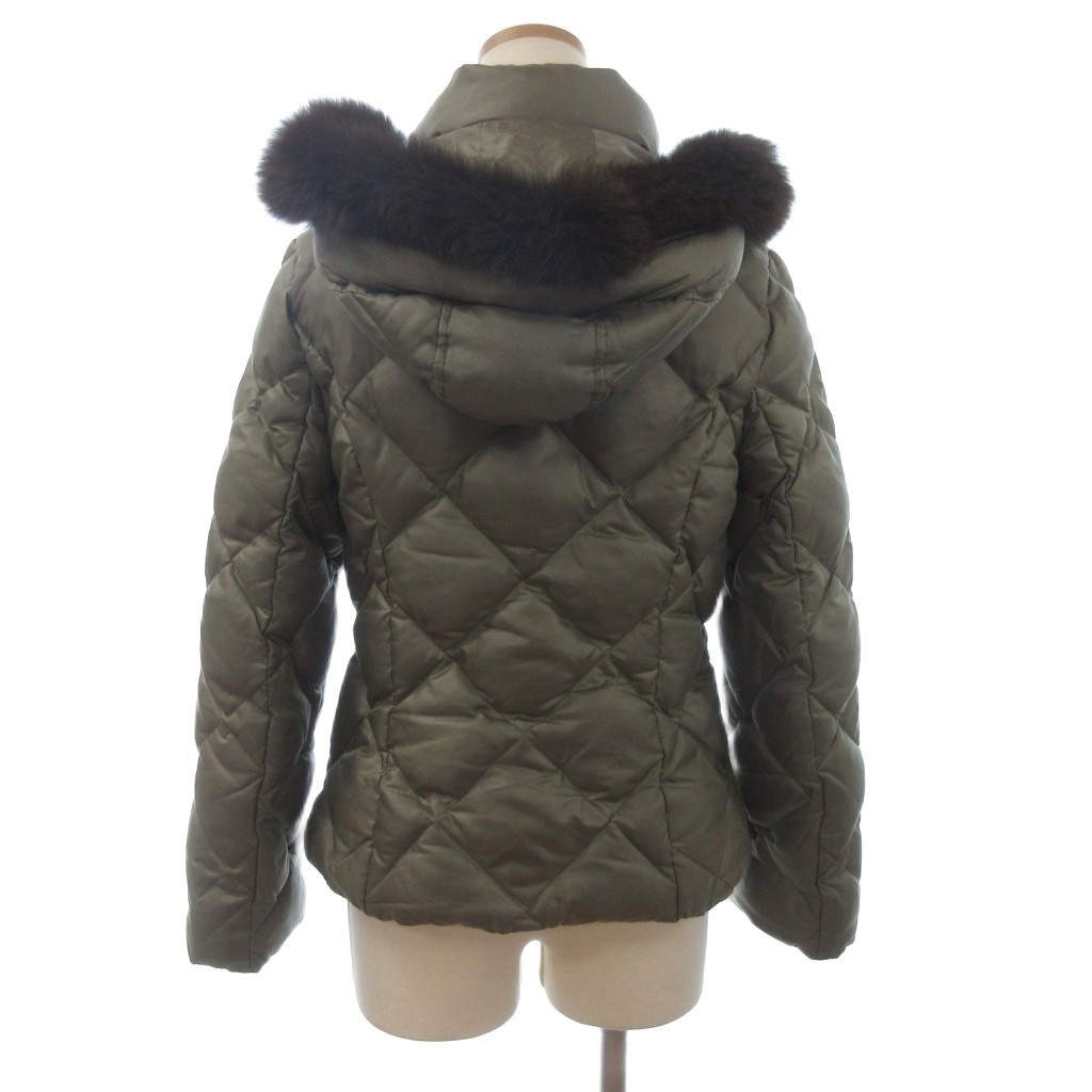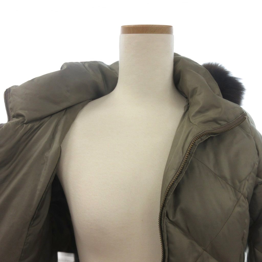 23区 オンワード樫山 ダウンジャケット ブルゾン フルジップ フーディ ファー 緑 カーキ 38 レディース