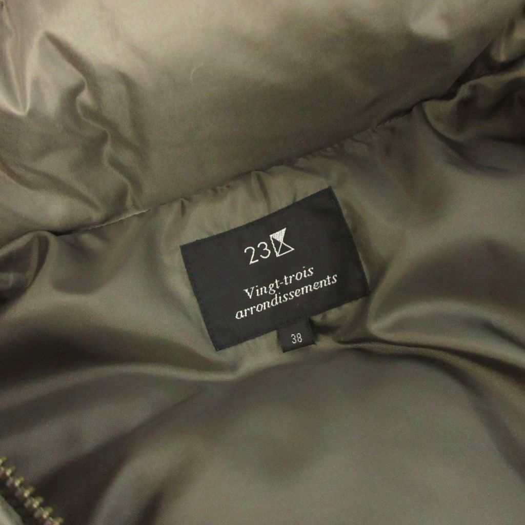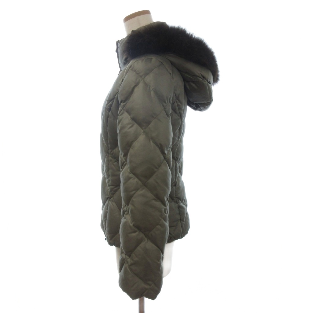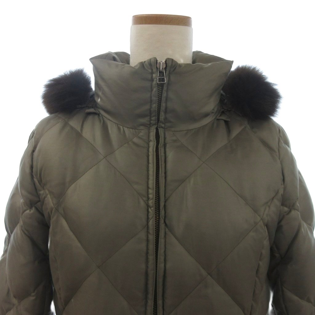 23区 オンワード樫山 ダウンジャケット ブルゾン フルジップ フーディ ファー 緑 カーキ 38 レディース