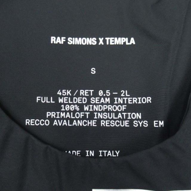 未使用品 19aw ラフシモンズ RAF SIMONS TEMPLA コラボ プリマロフト オーバーサイズ ベスト プルオーバー アウター ビッグシルエット S 黒 ブラック 192-201/△E07/メンズ