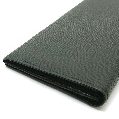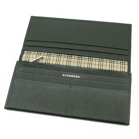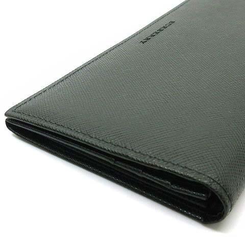 バーバリー BURBERRY サフィアーノレザー 二つ折り 長財布 小銭入れあり ダークグリーン 美品 メンズ