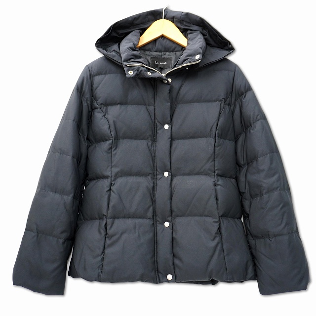 ルスーク Le souk フーディ フルジップ ダウン ジャケット 36 ブラック レディース