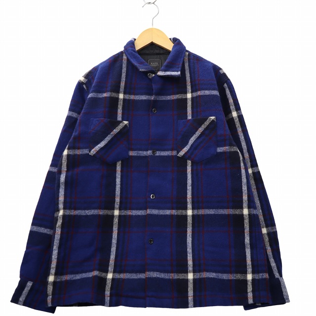 ラッツ RATS BLUE CHECK WOOL SHIRT ブルー チェック ウールシャツ M BLUE ブルー 18'RS-1201 メンズ